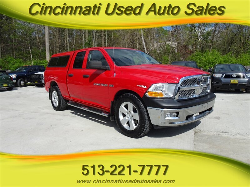 **FLAME RED MOPAR PAINT** THIS 2012 RAM 1500 HEMI VEHICLE COMES WITH 3 MONTH/4500 MILE WARRANTY! ASK ABOUT OUR GREAT FINANCE OPTIONS! POWER WINDOWS! EXCELLENT TIRES! POWER LOCKS! CD PLAYER! RIDES AND DRIVES GREAT! 6 FOOT BED! COLOR MATCHED CAMPER TOP! PRICED TO SELL QUICK! HURRY IN AND DON'T LET THIS GREAT DEAL PASS! FOR MORE GREAT DEALS AND IMAGES OF THIS FINE VEHICLE VISIT US AT WWW.CINCINNATIUSEDAUTOSALES.COM! ASK FOR JUSTIN OR ZACK! **WARRANTY INCLUDED AT ASKING PRICE!