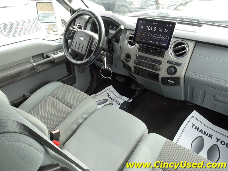 This 2014 F-250 Super Duty XLT is factory-equipped with the 6.7L Power Stroke Turbo V8 diesel, rated at approximately 400 horsepower and 800 lb-ft of torque. The powerplant is paired with Ford’s heavy-duty automatic transmission and the Super Duty drivetrain and chassis engineered for towing and commercial use. The XLT trim balances work-ready capability with mid-level comfort and convenience features as shipped from the factory.
